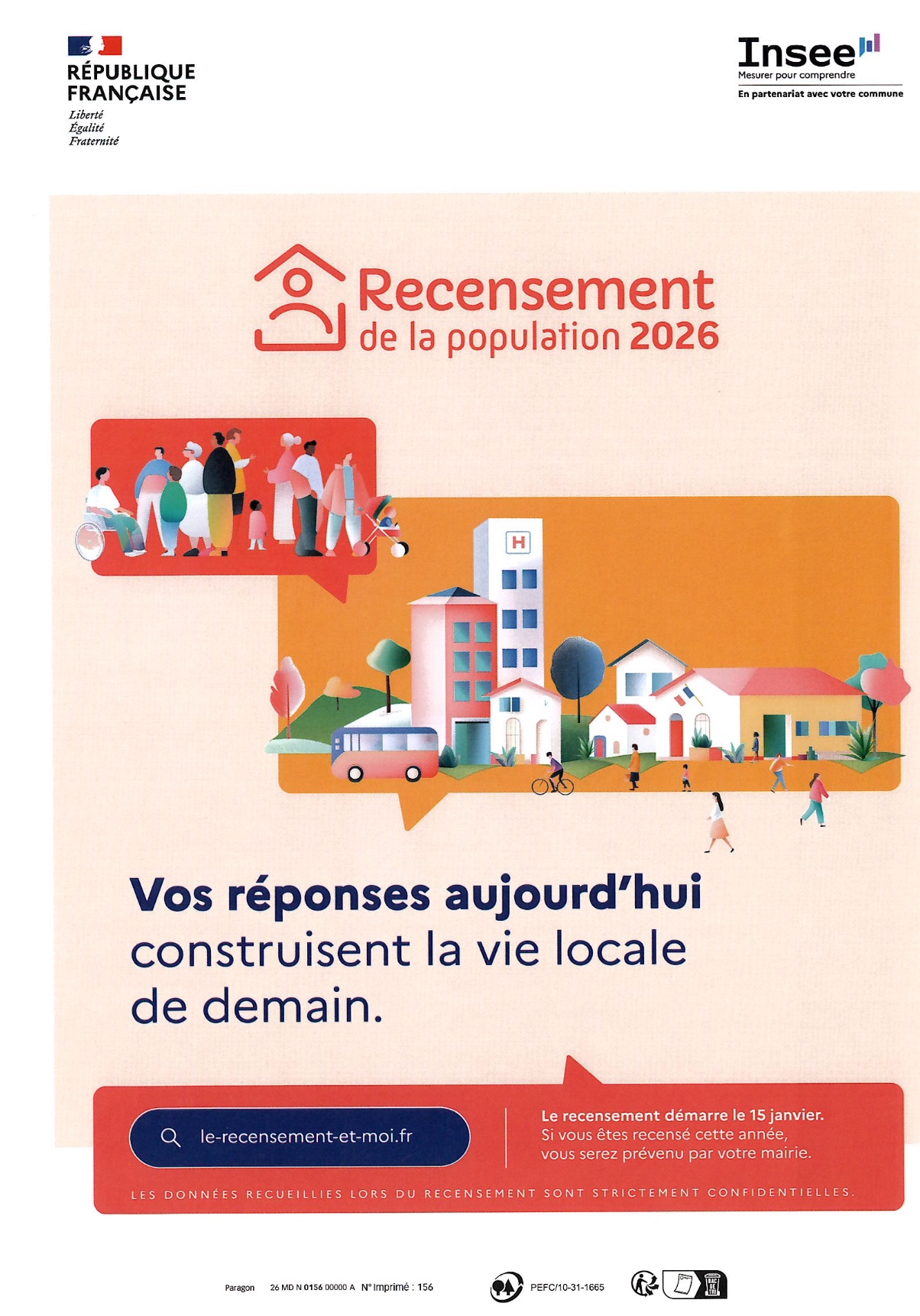 Le recensement a débuté. Merci de réserver le meilleur accueil à la personne chargée de vous contacter.