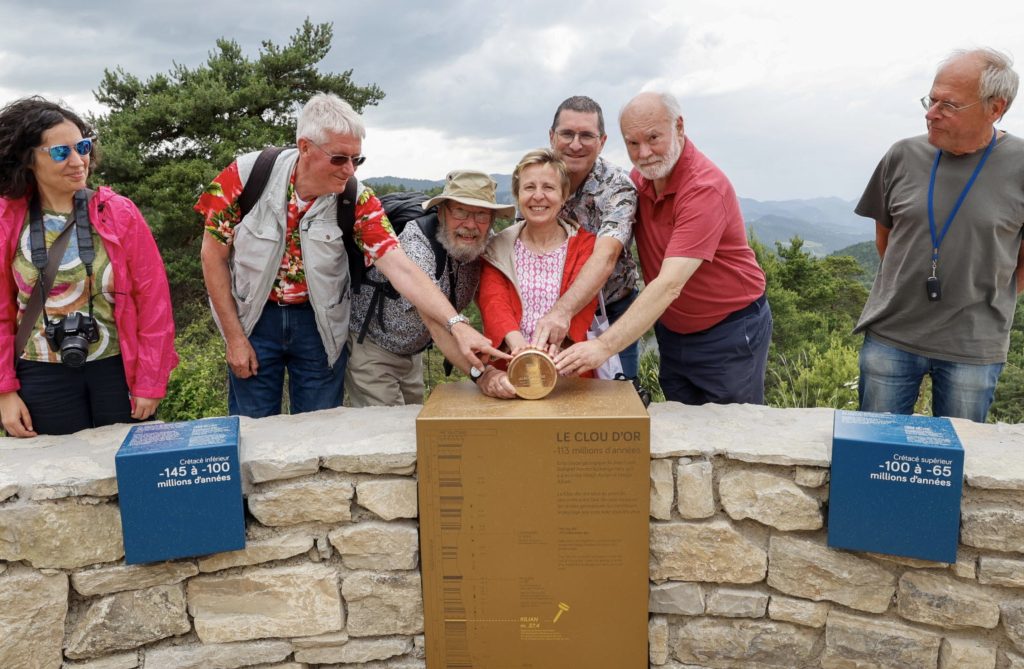 – Le clou d’or du Col de Pré-Guittard, à Arnayon, qui marque la limite de l’étage Albien (Crétacé). La pose officielle a eu lieu en juin 2024.